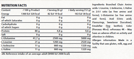 BCAA 2:1:1 with Glutamine powder – Fruit punch flavoured amino acids contai-