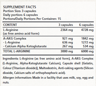USA L-ARGININE – L–Arginine containing dietary supplement.